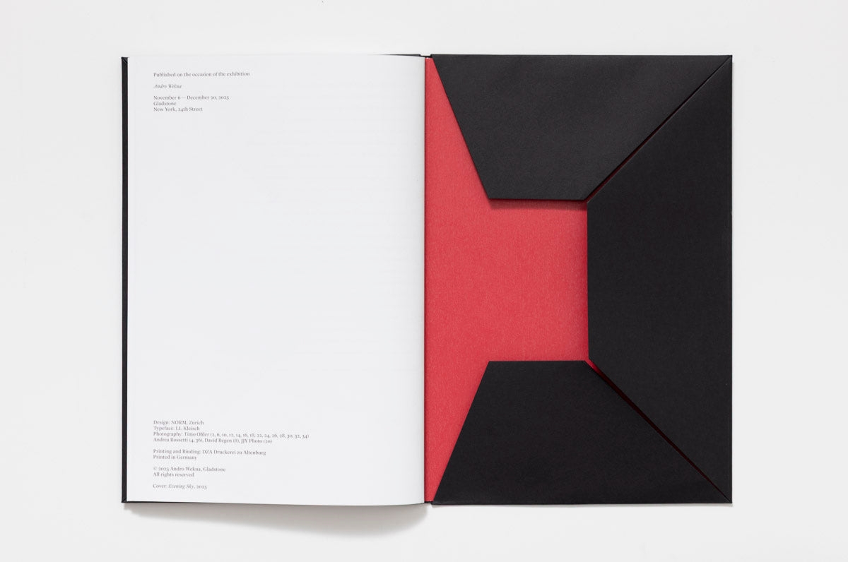 Published on the occasion of Andro Wekua's 2025 exhibition at Gladstone Gallery in New York. This 46-page catalogue depicts 23 paintings from 2024–2025 and includes text by Alissa Bennett. The catalogue also includes a loose image of a 1999 watercolor and charcoal drawing dedicated to Barbara Gladstone.